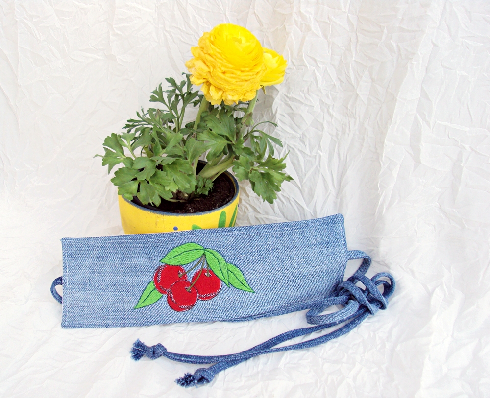 Se leaga la spate sau in lateral cu sireturi din jeans.