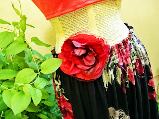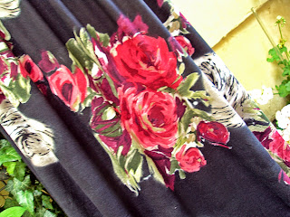 Lycra, imprimat cu tradafiri rosii pe fond negru.