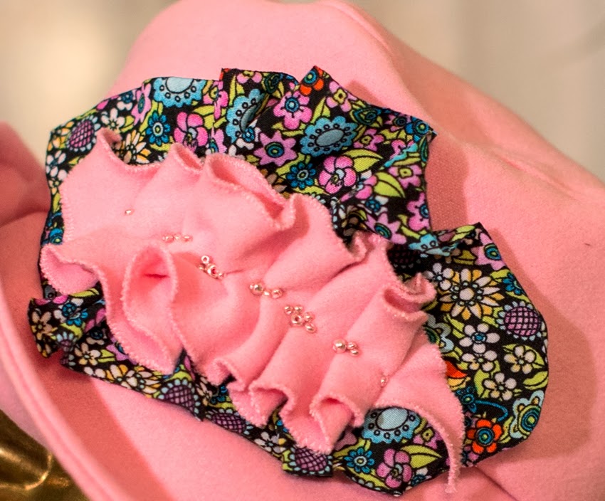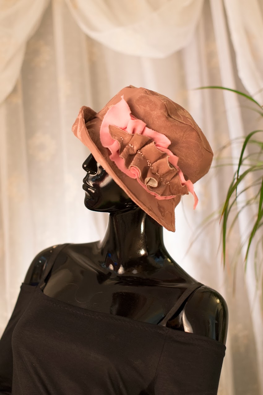 Doua palarii din materiale in doua nuante de roz, una mai dulce si mai diafana, alta mai catifelata si mai eleganta, cu aer de vremuri trecute, prafuite de timp... Accesorizate cu o aplicatie din stofa roz si vascoza inflorata sau brocart si stofa roz, cu margelute cusute manual, fiecare este unica si nu poate fi repetata in mod identic.