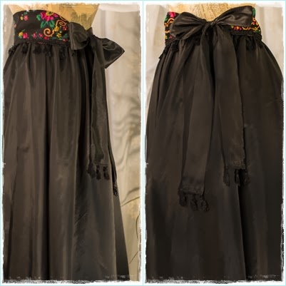 Casmir cu print etno, franjuri de matase, tafta neagra eleganta, tinuta chic cu trimitere la traditii...
